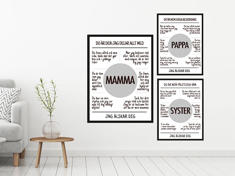 Vill du ha några få posters eller vill du skapa en stor bildvägg? Den enda gränsen för hur du kan arrangera dina posters är din fantasi. Posters kan göra mycket mer än du tror, och utbudet av posters online här på POSTERbyUS ger dig möjlighet att sätta din egen personliga prägel på ditt hem.